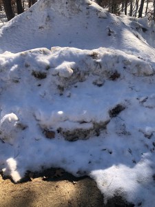 A series of snow falls and steady low temps has kept life more interesting that we might like this winter. Early on, a large snow plow truck got stuck close to where the gleeful snow pile sits now. It had to be towed out. A neighbor with a snow blower couldn’t help because the snow blower broke down. Shovels were useless with this volume of snow.