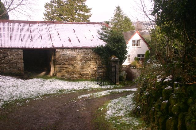 Our Ballsbridge apartment lease ran out at the end of January and the new apartment wasn’t available until 3 February. That meant that aside from badly needing a break, we were also homeless for three days. It became clear that this was a time to turn crisis into opportunity. We chose to make a long weekend of it, going to stay in a cottage in Aughavannagh in the Wicklow Mountains south of Dublin. You can see the cottage behind the shed, in the first photo.