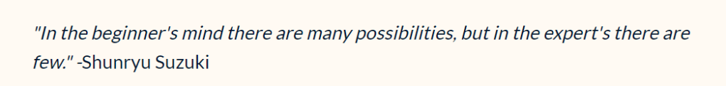 - ‘Abeginner mindset’ – taking the approach of looking at things as if I am completely new to them.
