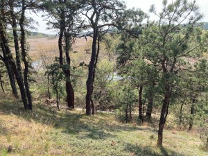 In some places we’ve added stakes and ropes to discourage off trail walking. As enticing as that bushwhacking may be for some, it can be very destructive for the land. For example, at the Herring River Overlook trail, walking down the dune towards the river kills fragile lichen, moss, bearberry, mayapple, violets, sea oats, and other vegetation. That in turn can lead to serious dune erosion.