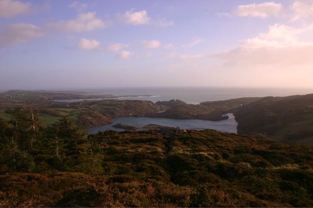 Lough HyneDespite the general theme of winter storm, we had frequent sun and glorious skies. That allowed us to manage several good walks. One was in the ancient forest above Glengariff; another around Lough Hyne south of Skibbereen; and others on the Sheepshead Way. We made good use of Kevin Corcoran’s West Cork Walks.Mizen peninsula