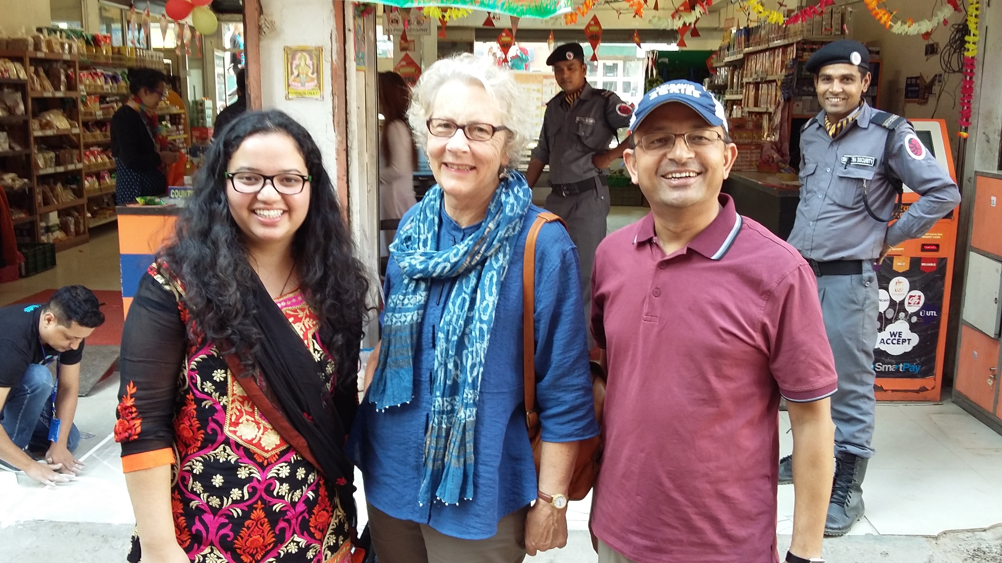 Kathmandu city itself has about a million inhabitants, but the district and the valley hold several times that many. It’s an interesting mix of megacity (traffic, pollution, crowds) with country (dirt roads, poultry, open air living). I was awakened by roosters and a cat fight outside my window this morning. One can see cows lying in the middle of the densely traveled Ring Road.