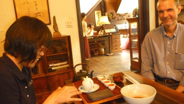 Alex and Shihkuan introduced Susan and me to Taipei, including the Wistaria (or Wisteria) Tea House. This is a Japanese-style wooden house built in the 1920s, which is named for three wisteria vines planted in the front courtyard. The house served as a residence for the Governor-General of Taiwan under Japanese rule prior to 1945. It became a teahouse and was known as a venue for political dissidents during the 1980s. It continues as a meeting place for literati, artists, and academics and was used for the filming of Eat Drink Man Woman.